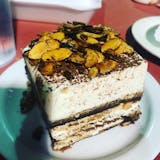 Biscotti dipped in espresso and layered with delicate cocoa and white cream.